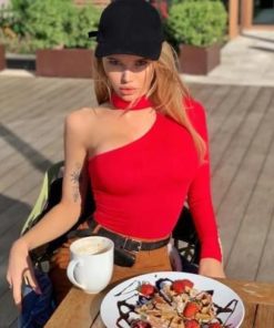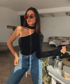 Body de malha com elastano e gola chocker, elasticidade na medida certa.