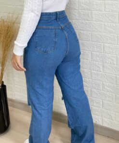 Calça jeans wide lavagem escura