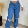 Calça jeans wide lavagem escura