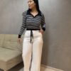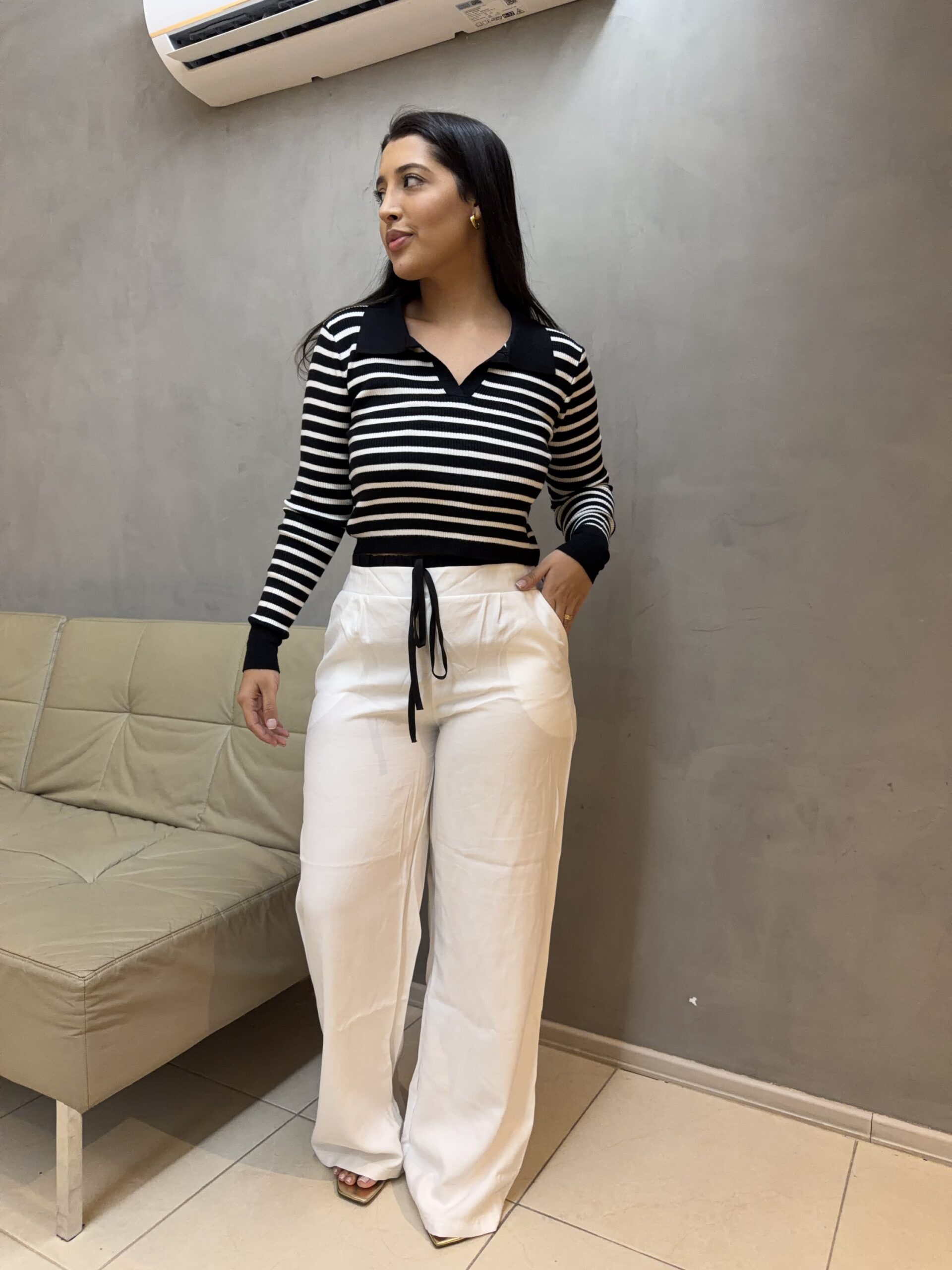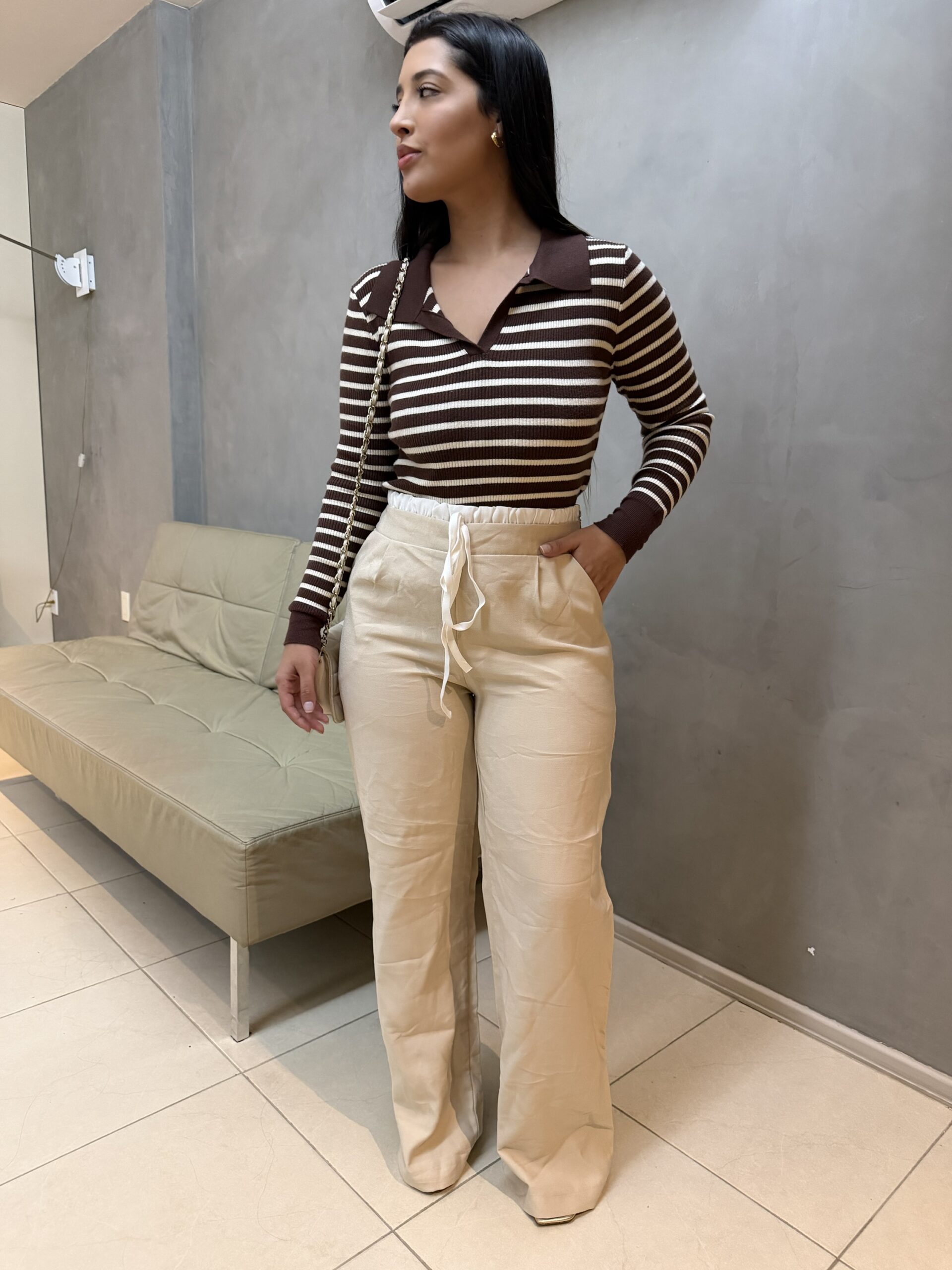 Uma calça perfeita para compor desde looks mais elegantes com salto ou blazer, até produções casuais e estilosas com tênis, sendo aquela peça curinga no guarda-roupa.