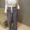 Marrant, conhecido pelo toque macio, caimento estruturado e leve elasticidade que proporciona conforto durante o uso. O modelo possui cintura alta com cós em elástico e amarração ajustável, trazendo uma proposta moderna que une elegância e praticidade.