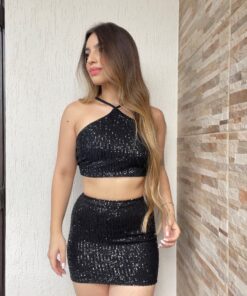 Com um design moderno, o Conjunto SXY Charlotte Paetê incorpora as últimas tendências da moda, expressando sua personalidade de forma única.