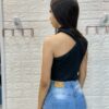 Tecido canelado, possui boa elasticidade.