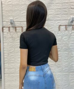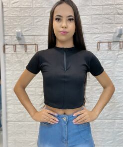 Cropped em suplex, possui boa elasticidade.