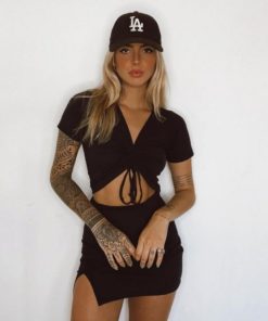 Croppped drapeado na frente, com a opção de drapear mais apertadinho ou mais abertinho, vai da preferência da pessoa.