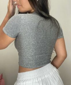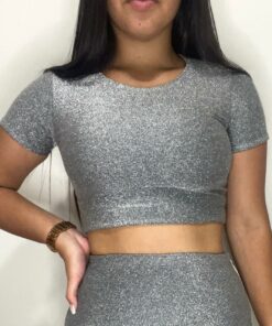 Cropped em malha lurex.