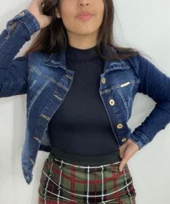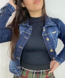 Jaqueta jeans Ri19, estilo cropped. Com bastante lycra.
