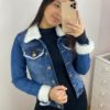 Jaqueta jeans Ri19, estilo cropped. Com bastante lycra.