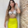 O zíper na lateral é o detalhe ousado que eleva o estilo desta saia curta, adicionando charme e personalidade à peça.