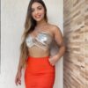 A modelagem assimétrica do short saia confere um toque moderno e diferenciado ao visual, garantindo que você esteja sempre na moda.