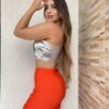 Com cós elástico, a saia curta proporciona um ajuste perfeito à sua cintura, garantindo conforto e liberdade de movimento.