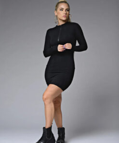 amei o caimento! moda muito o corpo e o zíper da um destaque lindo na peça.. da pra usar com o zíper aberto e fechado, o zíper não desce quando você deixa no busto, gostei muito e já recomendei pras minhas amigas